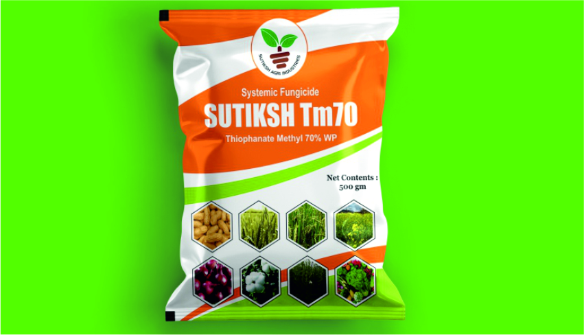SUTIKSH TM70 is a highly effective fungicide that offers fast-acting protection against fungal diseases in a wide variety of crops, including apple, bottle gourd, cucurbits, grapes, papaya, pigeon pea, tomato, and wheat. The product is quickly absorbed by plants and efficiently translocated to all parts, ensuring even coverage and effective disease management. SUTIKSH TM70 works by preventing fungal penetration and stopping the formation of lesions, which are key factors in the spread of fungal infections. Additionally, it disrupts the fungal reproductive system, impairing disease development and reducing future infection risks. This combination of fast absorption, systemic action, and inhibition of fungal reproduction makes SUTIKSH TM70 a powerful tool in integrated disease management, ensuring crops remain healthy and productive.